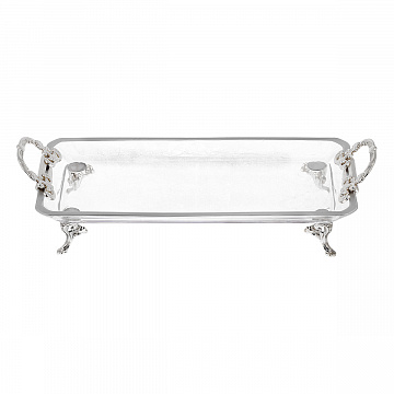 Блюдо прямоугольное н/н с ручками "Серебряный ободок", металл