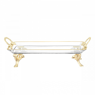 Блюдо прямоугольное н/н с ручками "Золотой ободок", металл