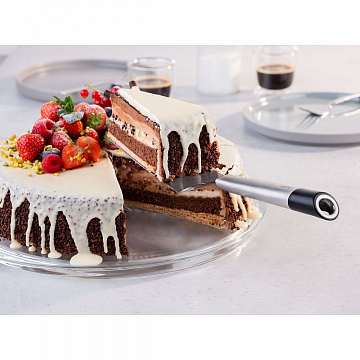Благодаря острой, как бритва, лопатка для торта из нержавеющей стали со специальным зубчатым лезвием, кусочки торта или пирога, а также вкусные десерты можно сразу порционировать и затем подавать.