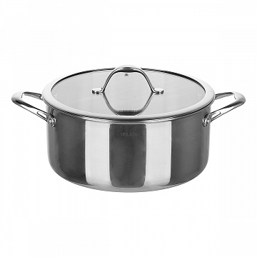 Кастрюля AVELINO 28х13см/7,8л со стеклянной крышкой. Трехслойный корпус, толщина 2,5мм, индукционное дно. Материал: нержавеющая сталь 18/10. Полирование: зеркальное.