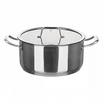 Кастрюля ROBERTO 28х13см/7,8л со стеклянной крышкой. Индукционное капсульное дно. Материал: нержавеющая сталь 18/10. Толщина: 0,6мм. Полирование: зеркальное.