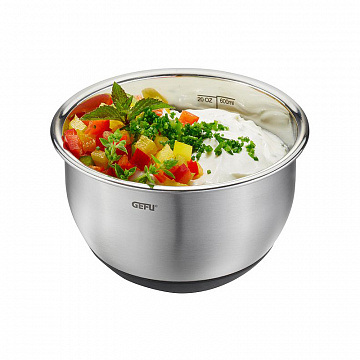 Разнообразные возможности использования и прочное основание делают эту миску очень популярной, а крышка для хранения, которая идет в комплекте, позволяет в любое время хорошо видеть деликатесы внутри.