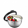 Универсальная миска с крышкой изготовлена из нержавеющей стали - матовой снаружи и глянцевой внутри. На внутреннюю поверхность нанесена мерная шкала - до 600 мл. Герметичная прозрачная крышка окантована силиконом. Дно миски покрыто силиконом для устойчивости на столе. Объем: 600 мл. Удобное нескользящее силиконовое дно. Мерная шкала на внутренней стенке чаши. Размер: Ø14,5 см, высота 8,6 см. Толщина стенки чаши 1,5 мм.