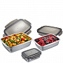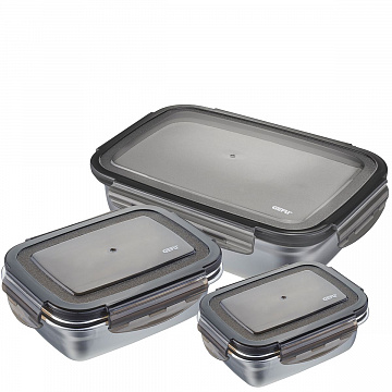 Ваш холодильник будет поражен: таких элегантных контейнеров для хранения продуктов он еще не видел. PREPPO выполнен из высококачественной нержавеющей стали и имеет герметичную защелкивающуюся пластиковую крышку. Прочный контейнер на 100% герметичен, универсален и сохраняет свежесть особенно долгое время. Банки из нержавеющей стали в наборе из 3 штук. Пластиковая крышка с защелкой. 100% герметичность благодаря силиконовому уплотнению. Подходит для: холодильника и морозильника (до -20 градусов), микроволновой печи (без крышки), духовки (до 300 градусов, без крышки). Объем наполнения 0,4л/1л/1,8л. Размеры маленькой формы: 14,7 см х 11,2 см х 5,3 см. Размеры средней формы: 19,8 см х 14,5 см х 6,5 см. Размеры большой формы: 23,1 см х 18 см х 8,2 см. Многоразовое использование с добавленной стоимостью. Чем дольше вы можете использовать продукт, тем лучше для окружающей среды. GEFU сознательно делает ставку на долговечные, многоразовые продукты, которые помогают избежать пластиковых отходов и сохранить ценное сырье и энергетические ресурсы. Благодаря длительному сроку хранения нет необходимости постоянно покупать экологически вредные одноразовые изделия – полезно для природы, полезно для вашего кошелька.