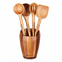 Набор кухонных аксессуаров из 4 предметов на подставке. В комплекте: половник, ложка с прорезями, ложка, лопатка. Материал: акация, медь.
