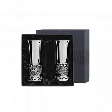 Набор стопок 2 шт. "Глухари" посеребренный с чернением + футляр (арт. 65867)