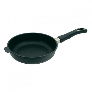 Алюминиевая сковорода изготовлена методом литья под давлением, что делает изделие идеальным для равномерного переноса тепла, обеспечивает одинаковую температуру нагрева по всей поверхности сковороды. Сковороды имеют антипригарное покрытие BIOTAN - это уникальный состав и способ его нанесения. Покрытие является натуральным и очень прочным, так как изготавливается на основе био-минералов. Оно позволяет готовить здоровую пищу без лишних жиров. Толщина дна составляет 8 мм, оно не деформируется и гарантирует равномерное распределение тепла по всей поверхности. Съемная эргономичная ручка, крепится с помощью очень прочной защелки и выдерживает температуру в духовке до 260°С. Отличная устойчивость к термическому удару. Специальная кромка по верхнему краю изделия выполняет функцию "стоп-капли", что позволяет внешним стенкам посуды оставаться всегда чистыми, при перекладывании еды в тарелку. После использования сковорода легко моется, так же можно мыть в посудомоечной машине. Каждая сковорода имеет индивидуальный номер.