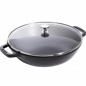 Чугунные воки Staub по-настоящему универсальны и идеально подходят для обжаривания, приготовления на пару и жарки во фритюре. Широкие изогнутые бортики облегчают перемешивание без проливания – преимущество при жарке мяса и овощей. Чугун замечательно сохраняет тепло для равномерного приготовления пищи.