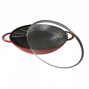 Чугунные воки Staub по-настоящему универсальны и идеально подходят для обжаривания, приготовления на пару и жарки во фритюре. Широкие изогнутые бортики облегчают перемешивание без проливания – преимущество при жарке мяса и овощей. Чугун замечательно сохраняет тепло для равномерного приготовления пищи.