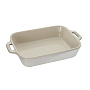 В этой прямоугольной форме Staub можно приготовить самые разные блюда. Хотя она идеально подходит для гратенов и десертов, её также можно легко использовать для выпечки пирогов. Она превосходно подходит для приготовления еды для всей семьи. Элегантный дизайн делает эту форму идеальной для сервировки блюд к столу. Поверхность формы можно с легкостью очистить. Удивите своих гостей оригинальными блюдами, приготовленными в этой керамической форме Staub. Посуда изготовлена из керамики, покрытой эмалью. Не содержит свинца. Подходит для использования в духовке и микроволновой печи, может использоваться для сервировки. Нельзя использовать на открытом огне. Можно помещать в морозильную камеру, но не ставить керамическую посуду из морозильной камеры сразу в горячую духовку. Чтобы не обжечься, пользуйтесь прихватками. Можно мыть в посудомоечной машине или вручную, используя губку. Сушить вверх дном.