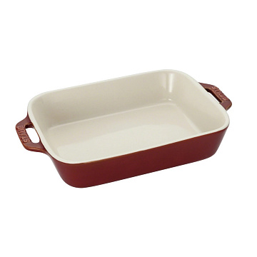 В этой прямоугольной форме Staub можно приготовить самые разные блюда. Хотя она идеально подходит для гратенов и десертов, её также можно легко использовать для выпечки пирогов. Она превосходно подходит для приготовления еды для всей семьи. Элегантный дизайн делает эту форму идеальной для сервировки блюд к столу. Поверхность формы можно с легкостью очистить. Удивите своих гостей оригинальными блюдами, приготовленными в этой керамической форме Staub. Посуда изготовлена из керамики, покрытой эмалью. Не содержит свинца! Подходит для использования в духовке и микроволновой печи, может использоваться для сервировки. Нельзя использовать на открытом огне. Можно помещать в морозильную камеру, но не ставить керамическую посуду из морозильной камеры сразу в горячую духовку. Чтобы не обжечься, пользуйтесь прихватками. Можно мыть в посудомоечной машине или вручную, используя губку. Сушить вверх дном.