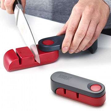 Уникальный инструмент с вращающейся крышкой, которая выполняет сразу две функции. Во-первых, открыв ножеточку, вы сразу обеспечиваете себя удобной ручкой, позволяющей плотно прижимать инструмент к столешнице. А во-вторых, после заточки лезвия ножеточка аккуратно складывается, что экономит место в вашем кухонном ящике.
