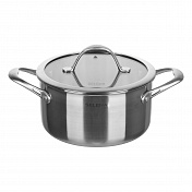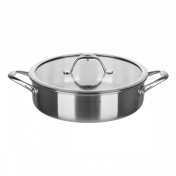 Кастрюля-сотейник LIVORNO 28х8см/5л со стеклянной крышкой. Трехслойный корпус, толщина 2,5мм, литое индукционное дно. Материал: нержавеющая сталь 18/10. Полирование: матовое.