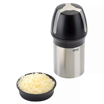 Терка Parmigiano, представленная ведущим немецким брендом Gefu, идеальна не только для сыра, но и для шоколада, орехов, а также других твердых продуктов. В комплект входят два диска, которые позволят сделать как мелкую стружку для украшения десертов, так и более крупные хлопья для салата и пасты. Благодаря практичной конструкции диски с легкостью меняются, очищаются в посудомоечной машине и без труда устанавливаются на место. К тому же они всегда будут у вас под рукой, ведь в крышке терки для дисков есть специальный отсек. Прибор максимально удобен в обращении и безопасен в работе.