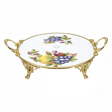 Блюдо круглое н/н с ручками 41х32см."Фрукты"