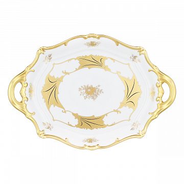 Блюдо овальное с ручками 37см."Кленовый лист белый"