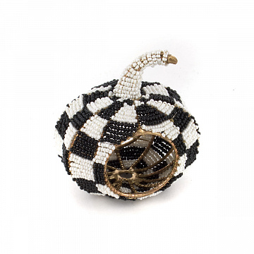 Кольцо для салфетки Checked Pumpkin от MacKenzie-Childs.Клетчатое кольцо из тыквы в клетку - сложная комбинация черного и белого бисера на раме из латуни и железа, которая является идеальным завершающим штрихом.