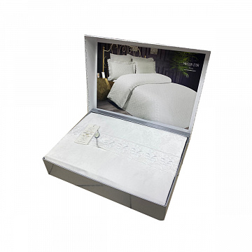 Комплект постельного белья 200х220см.6пред."Gupurlu Emerald" с гипюром белый Maison Dor