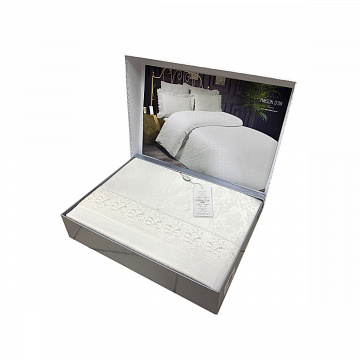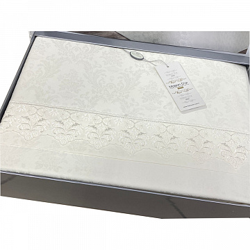 Комплект постельного белья 200х220см.6пред."Gupurlu Emerald" с гипюром кремовый Maison Dor