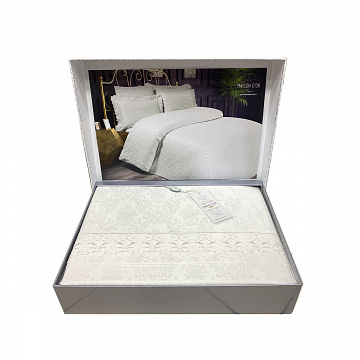 Комплект постельного белья 200х220см.6пред."Gupurlu Emerald" с гипюром кремовый Maison Dor
