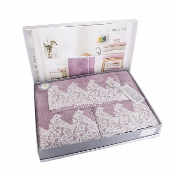 Набор полотенец с кружевом 3шт "JASMIN" фиолет.