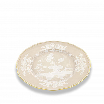 Фарфоровая тарелка с декором Meringa и золотой нитью. Элегантность и декоративная универсальность сочетаются в центральном элементе дизайна бежевого оттенка Meringa, который идеально подходит для передачи тепла и глубокого чувства праздничного настроения за столом. Этот декоративный центральный элемент с белыми узорами и золотой нитью является знаком внимания и заботы о деталях, возвышая обеденный опыт, делая его более особенным. Помимо того, что он способствует ощущению порядка на официальных обедах и церемониях, его можно использовать в качестве основы для дизайнерских центральных элементов или цветочных композиций, таким образом, он также оказывается многофункциональным элементом вне приема пищи. Каждое фарфоровое изделие в коллекции, с его нежным цветочным декором и всегда оригинальной цветовой гаммой, является настоящим произведением искусства , готовым очаровать взоры ваших гостей.