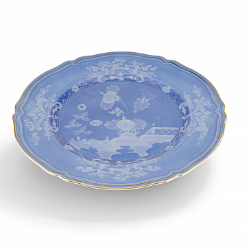 Дизайнерская тарелка для сервировки синего цвета. Коллекция Oriente Italiano Ginori 1735 года. Часть престижной коллекции Oriente Italiano, эта фарфоровая тарелка синего цвета прославляет изысканность, достигнутую благодаря искусному итальянскому мастерству. Цветочный мотив, вдохновленный гвоздикой, переплетается с характерной формой Antico Doccia с ее мягкими и гармоничными линиями, придавая тарелке вневременную ауру романтики. Идеально подходящая для особых случаев или важных торжеств, эта фарфоровая тарелка синего цвета добавит элегантности любому mise en place, полному характера, отражая ценность художественных традиций и производственного совершенства Ginori 1735. Благодаря своему изысканному и универсальному дизайну ее можно использовать как поднос для закусок и закусок или как оригинальный центральный элемент. Помещенная на прихожую, дизайнерская тарелка становится изысканным контейнером для ключей и небольших предметов или элегантной шкатулкой для драгоценностей, которую можно поставить на комод в спальне.