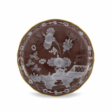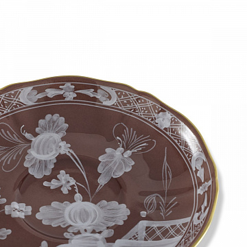 Фарфоровое чайное блюдце с декором Castagna и золотой нитью. Коллекция Oriente Italiano. В теплом коричневом оттенке Castagna, украшенном изящной золотой нитью , фарфоровое чайное блюдце оказывается идеальным предметом для любого времени дня. Используете ли вы его для послеобеденного чая с гостями или для одиночного перерыва после работы, это дизайнерское чайное блюдце привносит ауру элегантного уюта. Каждое изделие из культовой коллекции Ginori 1735 представляет собой уникальный фарфоровый шедевр, украшенный цветочными мотивами и яркими цветами, способными привлечь внимание и очаровать любого, кто их рассматривает.