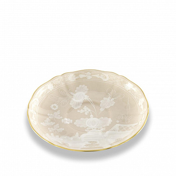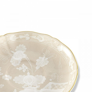 Фарфоровое чайное блюдце с декором «Meringa» и золотой нитью. Коллекция Oriente Italiano. В теплом бежевом оттенке Meringa, украшенном изящной золотой нитью , фарфоровое чайное блюдце оказывается идеальным предметом для любого времени дня. Используете ли вы его для послеобеденного чая с гостями или для одиночного перерыва после работы, это дизайнерское чайное блюдце привносит ауру элегантного уюта. Сочетание теплых цветов и золотых деталей делает его универсальным дополнением к любому стилю декора. Каждое изделие из культовой коллекции Ginori 1735 представляет собой уникальный фарфоровый шедевр, украшенный цветочными мотивами и яркими цветами, способными привлечь внимание и очаровать любого, кто их рассматривает.