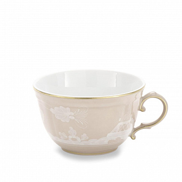 Фарфоровая чайная чашка с декором «Meringa» и золотой нитью. Коллекция Oriente Italiano. Изысканный оттенок бежевого цвета Meringa придает фарфоровой чайной чашке утонченную элегантность, подчеркнутую изысканной золотой нитью и нежными белыми узорами. Благодаря универсальности и оригинальности этих фарфоровых изделий вы можете удивить своих гостей смелыми цветовыми сочетаниями. Начните с выбора оттенков, которые наиболее соответствуют вашему стилю, и подберите чашку к соответствующему блюдцу: вы превратите ритуал чайной паузы в момент созерцания красоты в ее самых тонких проявлениях. Погрузитесь в эту культовую коллекцию Ginori 1735 , созданную с мастерством, которое всегда отличало эту престижную флорентийскую мануфактуру.
