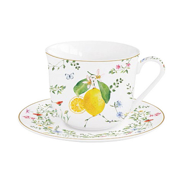 Чашка с блюдцем Цветы и лимоны, 0,37 л