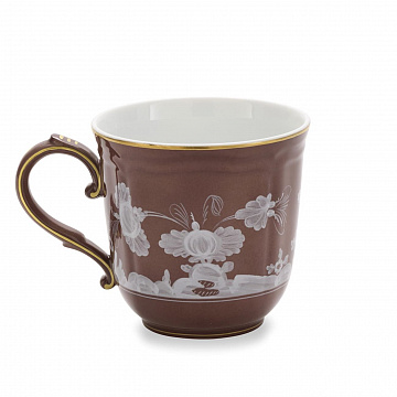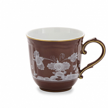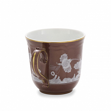 Фарфоровая кружка с декором Castagna и золотой нитью. Коллекция Oriente Italiano. Изысканность и функциональность сочетаются в этой фарфоровой кружке коричневого оттенка Castagna с золотой нитью. Будь то изысканный чай или горячий шоколад, эта дизайнерская кружка станет идеальным спутником для отдыха, как в одиночестве, так и в компании друзей. Идеально подходит для семейного завтрака, послеобеденного чая с друзьями или расслабляющего тет-а-тета после ужина, он превратит даже самые простые праздничные моменты в приятные и запоминающиеся впечатления. Его элегантная роскошная коробка делает его драгоценным подарком, идеальным для празднования особого случая или выражения жеста привязанности. Получайте удовольствие, выбирая украшение и цвет, которые лучше всего отражают личность человека, которому вы собираетесь его подарить. Каждое фарфоровое изделие из коллекции Oriente Italiano , украшенное цветочным декором и яркой цветовой палитрой, представляет собой шедевр, сочетающий в себе традиции и инновации, готовый поразить самый изысканный вкус.