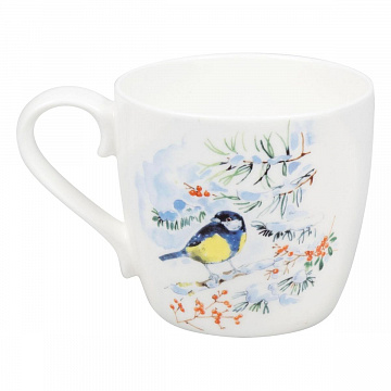 Посмотрите, синица! Даже зимой эту милую птичку можно встретить в наших широтах в поисках еды. Она только что устроилась на заснеженной ветке. Волшебная иллюстрация художницы Виктории Лоу оживляет на фарфоре спокойное настроение зимы. Кружка с птичьей тематикой станет прекрасным подарком на Рождество и многие другие случаи.