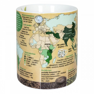Приветствую всех любителей чая! Эта кружка знаний о чае Könitz — ваш путеводитель по всему, что вы когда-либо хотели знать о своем любимом напитке — от идеальных температур заваривания до уникальных характеристик различных сортов. Предпочитаете ли вы зеленый, черный или белый чай, каждый глоток будет иметь особенный вкус с этой кружкой. Но будьте осторожны: не заваривайте чай слишком долго, пока вы поглощены увлекательной информацией на кружке!