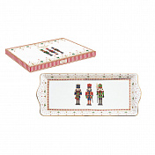 Центральным звеном в декорировании коллекции «Щелкунчик» стали деревянные солдатики из армии главного героя. Их изображения, выполненные в стиле примитивизма, украшают роскошные десертные тарелки, чайные чашки и подставки-этажерки для десертов.