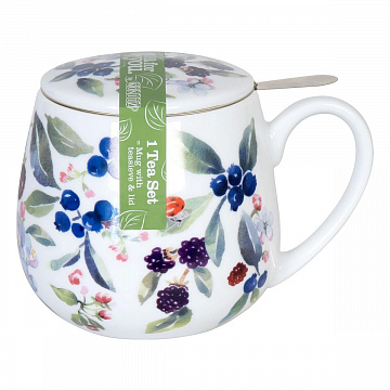 Набор для чая «Fruity Tea - Berry» идеально подходит всем любителям фруктового чая. Нежная акварельная иллюстрация с различными видами ягод, от черники до малины, мгновенно вызывает желание выпить чашечку горячего чая. Хорошо, что в практичный набор также входит соответствующее ситечко для чая. Красиво декорированная крышка гарантирует, что ваш напиток останется теплым в течение длительного времени. Благодаря высокому качеству изготовления кружка для чая с ситечком также станет отличным подарком.