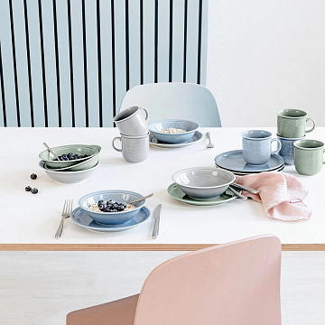 Thomas Trend Colour Mixed II Set - Набор для завтрака 18 предметов, фарфор. Trend White считается во всем мире одной из самых популярных столовых принадлежностей для повседневного использования. Trend Color расставляет цветные акценты, вдохновленные природой Севера. В набор входят: 2x Тарелка 20 см Moon Grey, 2x Кружка с ручкой Moon Grey, 2x Миска Moon Grey, 2x Тарелка 20 см Moss Green, 2x Кружка с ручкой Moss Green, 2x Миска Moss Green, 2x Тарелка 20 см Arctic Blue, 2x Кружка с ручкой Arctic Blue, 2x Миска Arctic Blue.