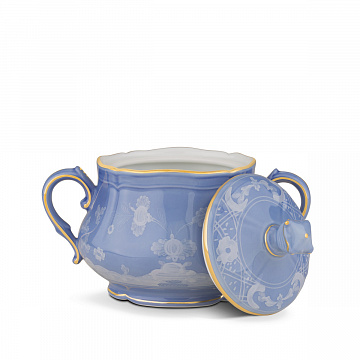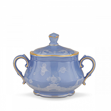 Сахарница из синего цвета. Коллекция Oriente Italiano Ginori 1735 года. Рисунок цвета барвинка придает фарфоровой сахарнице из коллекции Oriente Italiano изысканный вид, делая ее идеальным предметом сервировки для любого изысканного стола. Тонкие и нежные линии стилизованной гвоздики идеально дополняют форму фарфоровой сахарницы, создавая завораживающую игру света и тени, которая делает ее безусловной звездой стола. Эта синяя сахарница, готовая хранить и подавать сахар во время перерывов на чай или кофе, возносит искусство празднества на новые высоты. Каждое изделие коллекции Oriente Italiano — это ода вечной изысканности, сочетающая в себе традиции флорентийского фарфора с восточным вдохновением, что приводит к уникальной гармонии форм и цветов.