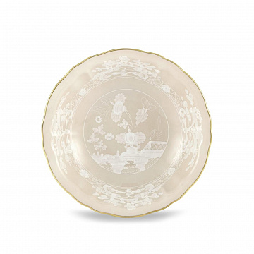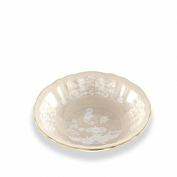 Маленькая фарфоровая чаша с декором «Meringa» и золотой нитью. Коллекция Oriente Italiano. Теплый и обволакивающий бежевый оттенок Meringa гармонично сочетается с золотой нитью в изящной небольшой фарфоровой миске, придавая обстановке интимную и гостеприимную нотку. Идеально подходит для тех, кто ценит изысканный стиль на столе, эта дизайнерская маленькая миска является универсальным и изысканным предметом. Идеально подходит для подачи фруктов или изысканных десертов в сочетании с десертными тарелками. В ней также можно хранить соусы и приправы во время изысканных аперитивов в кругу друзей, добавляя нотку класса любому случаю. Тщательно продуманные, яркие и экзотические цветочные украшения отличают эту культовую коллекцию от Ginori 1735 , где каждое фарфоровое изделие является шедевром, идеально подходящим для тех, кто ищет уникальный мизансцен.