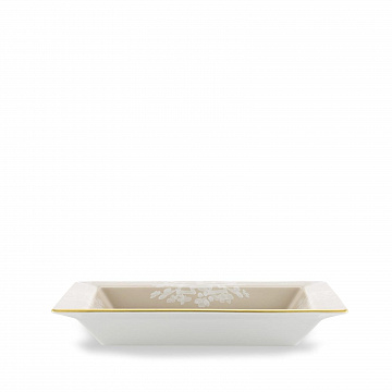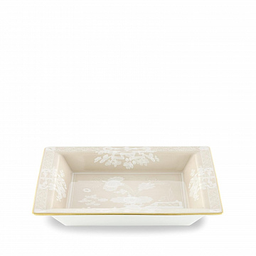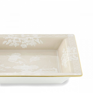 Элегантный фарфоровый поднос с декором Meringa и золотой нитью. Коллекция Oriente Italiano. Благодаря своему ненавязчивому, но изысканному присутствию, большой дизайнерский фарфоровый поднос для пеленания из коллекции Oriente Italiano Meringa украсит любое пространство универсальностью и элегантностью. Востребованный бежевый оттенок Meringa и нежная золотая нить делают его элементом домашнего декора, который идеально вписывается как в классические, так и в современные интерьеры. Поставьте его у входа в дом: он будет встречать гостей стильно, предоставляя элегантное место для хранения ключей, монет и мелких повседневных вещей. На вашем столе он станет изысканным подносом для рабочих безделушек, способствуя более упорядоченной и изысканной обстановке. Этот дизайнерский поднос для мелочей также идеально подходит для подачи закусок. Этот дизайнерский поднос для мелочей, представленный в эксклюзивной роскошной коробке , также идеально подходит для празднования особого случая или для того, чтобы удивить любимых людей. Его непременно оценят по достоинству за его способность сочетать элегантность и функциональность. Изделия из фарфора Oriente Italiano, изготовленные с мастерством, которое всегда отличало флорентийскую мануфактуру, превращают каждый предмет в произведение искусства, достойное высокой оценки.