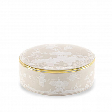 Шкатулка для мелочей бежевого цвета с декором из безе и золотой нитью. Коллекция Oriente Italiano. Теплый и обволакивающий оттенок бежевого украшен белыми узорами и золотой нитью в этой закрытой шкатулке для безделушек с изысканным дизайном. Помещенный на стол или в прихожую, он становится изысканным контейнером для небольших повседневных аксессуаров. Он также идеально подходит для хранения ювелирных изделий и ценностей в спальне или как изысканное решение для декора в профессиональных помещениях. Для тех, кто любит быть смелым, этот дизайнерский объект также может найти применение на столе: как солонка, сахарница, для подачи небольших блюд или изысканных закусок. Эта закрытая шкатулка для безделушек, упакованная в элегантную роскошную коробку , превращается в ценный подарок, идеально подходящий для свадеб, юбилеев или значимых торжеств. Вдохновитесь цветочными мотивами и яркими оттенками Oriente Italiano , которые стимулируют безграничное творчество, позволяя вам создавать уникальные и индивидуальные комбинации.