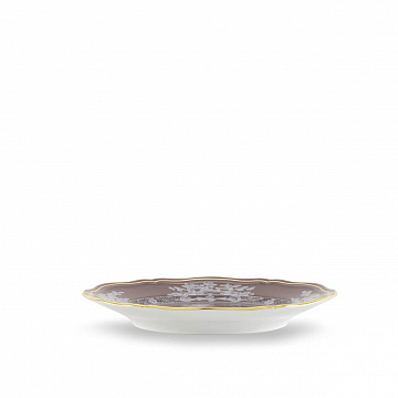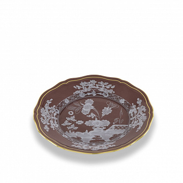 Фарфоровая тарелка с декором Castagna и золотой нитью. Коллекция Oriente Italiano. Нежные белые узоры и изысканная золотая нить характеризуют фарфоровую тарелка теплого коричневого оттенка Castagna. Эта хлебная тарелка идеально подходит для подачи ароматных сэндвичей и хлебных палочек во время еды, она украсит завтраки, ужины, закуски и бранчи своим ненавязчивым, но безошибочным внешним видом. Экзотические мотивы и яркие оттенки Oriente Italiano стимулируют безграничное творчество, позволяя создавать уникальные и индивидуальные комбинации, которые превращают каждый стол в восхитительное визуальное зрелище.