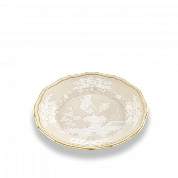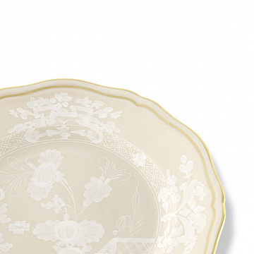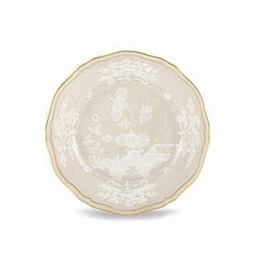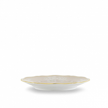 Фарфоровая тарелка с декором Meringa и золотой нитью. Коллекция Oriente Italiano. Нежные белые узоры и изысканная золотая нить характеризуют фарфоровую тарелку бежевого оттенка Meringa. Эта хлебная тарелка идеально подходит для подачи ароматных сэндвичей и хлебных палочек во время еды, она украсит завтраки, ужины, закуски и бранчи своим ненавязчивым, но безошибочным внешним видом. Экзотические мотивы и яркие оттенки Oriente Italiano стимулируют безграничное творчество, позволяя создавать уникальные и индивидуальные комбинации, которые превращают каждый стол в восхитительное визуальное зрелище.