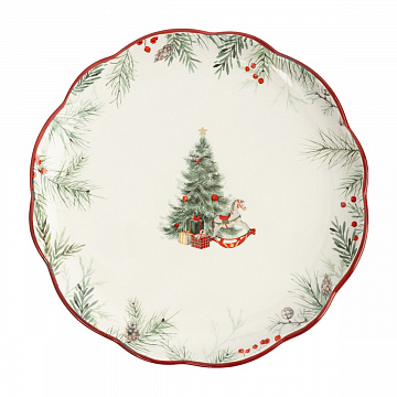 Тарелка 24см."Лошадка у елки" красная