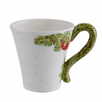 Чашка чайная от португальского бренда Bordallo изготовлена из качественной сверхпрочной керамики в стиле майолика. Выдержана в приятном молочном цвете с едва заметным тисненым орнаментом. Яркие ручки чашек расписаны под хвойные ветви, и этот рисунок с ручки красиво переходит на само изделие. Данная модель замечательно украсит зимний чайный стол.