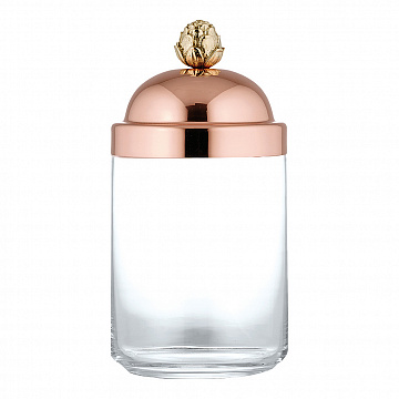 Идеально подходит для хранения муки, риса, зерновых, бобовых, круп, коротких макаронных изделий и многого другого. Выполнено из прозрачного стекла и цельной меди с бронзовой отделкой в виде артишока. Сделано в Италии. Средняя кухонная банка идеально подходит для хранения любых видов муки, риса, зерен и бобовых, сохраняя их свежесть благодаря силиконовой прокладке. Корпус банки сделан из стекла, поэтому вы можете видеть, что хранится внутри, следить за запасами и быть уверенным, что они никогда не закончатся. Крышка - в лучших традициях Ruffoni - изготовлена из цельной меди, а бронзовая ручка ручной работы имеет изящную форму артишока, чтобы привнести в ваш дом немного Италии.