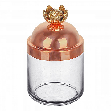 Идеально подходит для хранения сахара, сухих продуктов, чайных пакетиков, кофе и многого другого. Прекрасный подарок по любому поводу и идеальное дополнение к вашей коллекции Ruffoni. Выполнено из прозрачного стекла и цельной меди с бронзовой отделкой в виде лотоса.