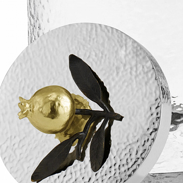 Стеклянная банка бренда Michael Aram коллекции "Pomegranate" сочетает функциональность и дизайнерское исполнение. Эта банка для хранения изготовлена из прочного стекла с элементами из нержавеющей стали серебряного цвета и декоративным золотым гранатом. Объем 4 литра (диаметр 19 см, высота 25 см) делает ее удобной банкой для сыпучих продуктов, круп, макарон или меда.