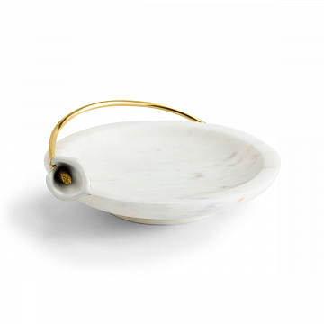 Блюдо Michael Aram из коллекции «Calla Lily» — это изящный предмет дизайнерской посуды. Основа выполнена из натурального белого мрамора, а главный акцент — цветок каллы из металла с покрытием золотого цвета. Диаметр блюда 15,2 см, высота 2,5 см. Компактные размеры делают его универсальным в использовании.