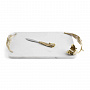 Доска и нож, изготовленные вручную из белой эмали с золотыми вставками, отражают свет на рельефных цветах. Этот функциональный, но в то же время изысканный набор — воплощение роскоши ручной работы, идеально подходящий для сервировки или демонстрации.